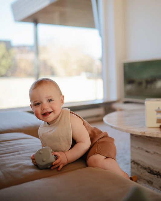 Muslin Bibs (Tan & Fog 2 Pack)